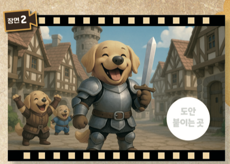 그때, 골댕 마을에 영웅이 등장한 게야. 영웅은 순식간에 전쟁을 끝냈고, 마을이 평화로워지자 사람들은 금을 팔아 부서진 집을 고쳤지.