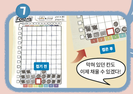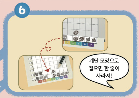 가로줄을 완성한 사람은 그 줄을 접어 지울 수 있어요.