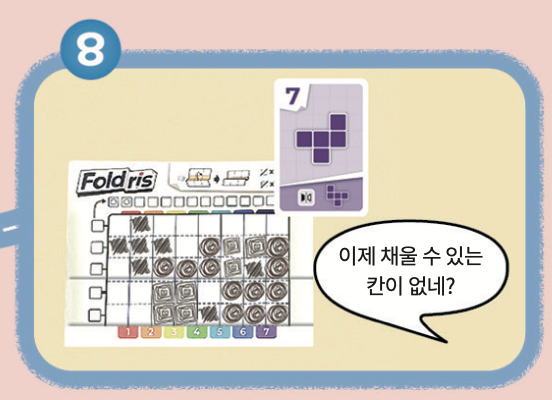 계속 게임을 진행해요. 블록을 더 이상 채울 수 없는 사람은 탈락! 가장 마지막까지 남은 사람이 이겨요.