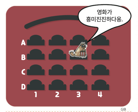 영화관 속 고양이가 앉아 있는 자리의 번호는 무엇일까요?