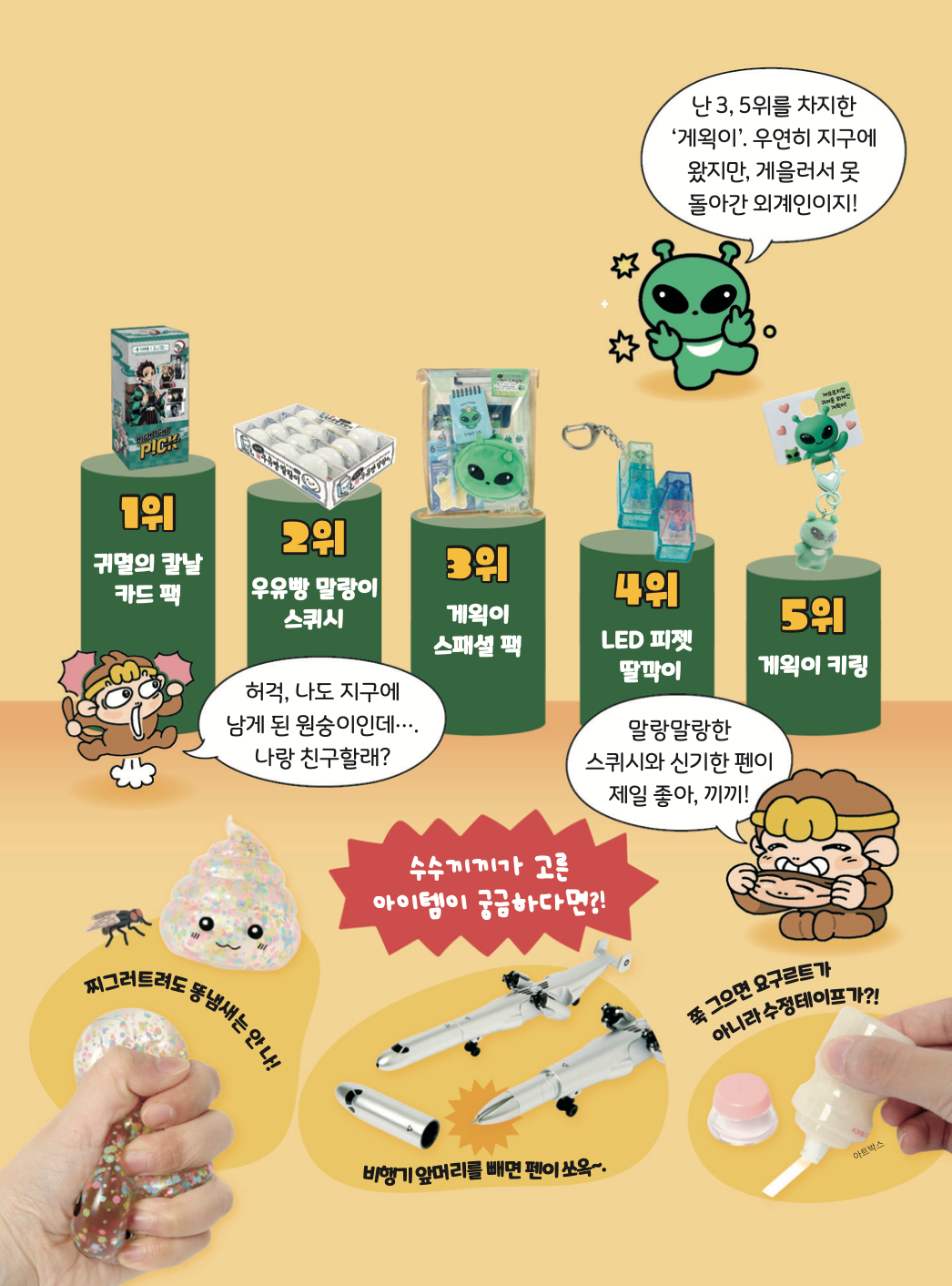 그중 초등학생에게 인기 많은 아이템 탑(TOP) 5는 바로..., 지금 공개합니다! 흑심 품은 녀석도 이 근처에 있을지 모르겠는걸?