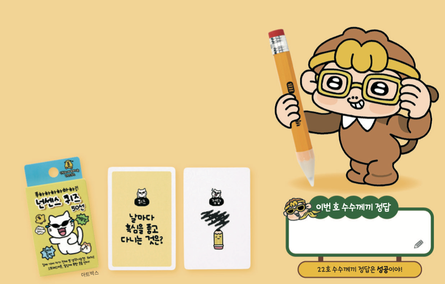 아직 정답을 모른다고? 아래 넌센스 퀴즈 카드 그림을 자세히 봐! 힌트를 좀만 더 주자면…,