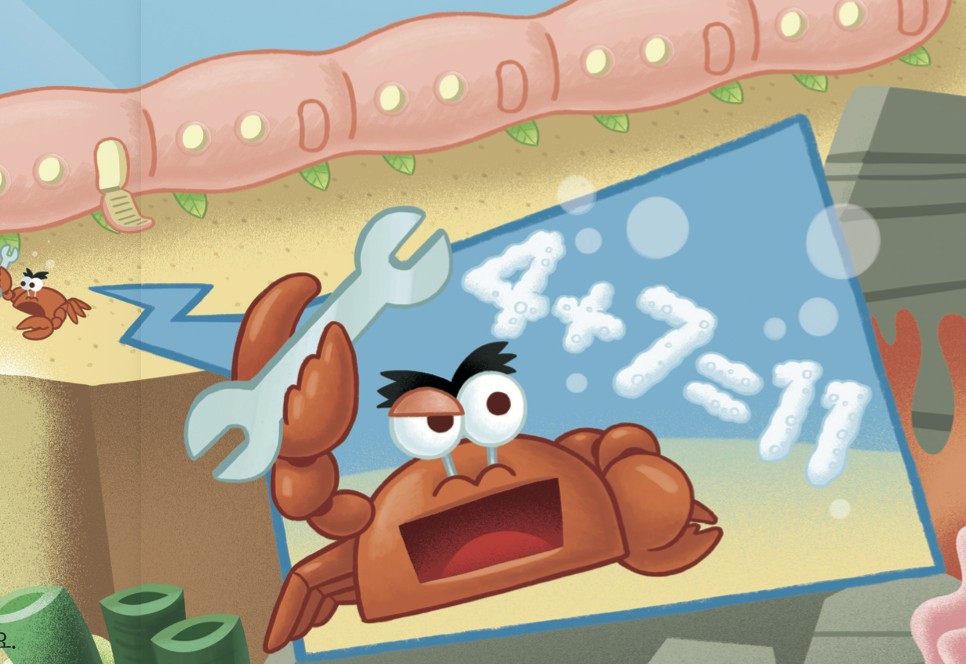 “반장님! 고장입니다! 나뭇잎 바퀴가 칸마다 4개 있고, 총 7칸이니까…, 4 더하기 7은 11! 11개만 교체하면 됩니다!”
