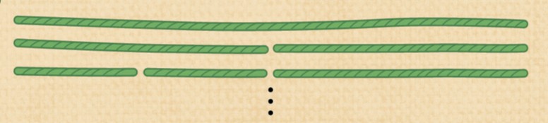 미옥 씨가 털실로 옷을 만들려고 해요. 기다란 털실 한 줄을 여러 번 잘라 점점 더 짧게 만들고 있지요.
