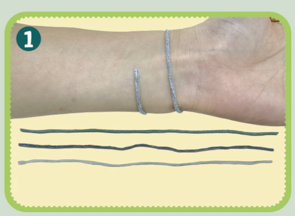 손목을 한 바퀴 반 감쌀 정도로, 실 3개를 잘라요.