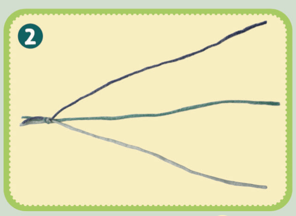 실 3개의 한쪽 끝을 모아서 묶어주세요.