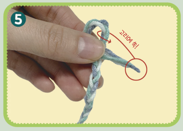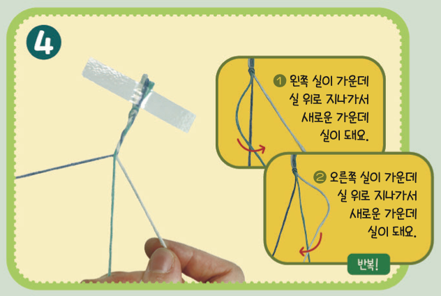 실 3개를 규칙에 맞춰 땋아요.