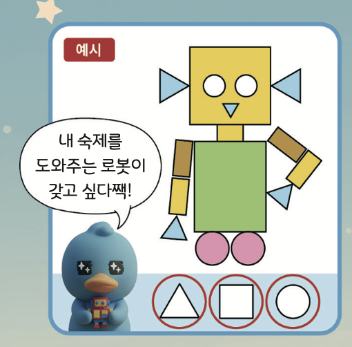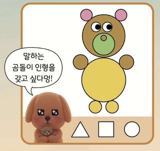 동물 친구들이 소원을 그림으로 나타냈어요. 그림에 사용된 도형에 모두 표시해 봐요.