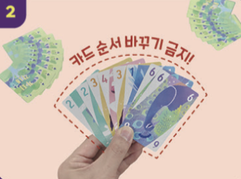 카드를 잘 섞은 뒤 8장씩 나눠 가져요. 이때, 받은 카드의 순서는 바꾸면 안 돼요.