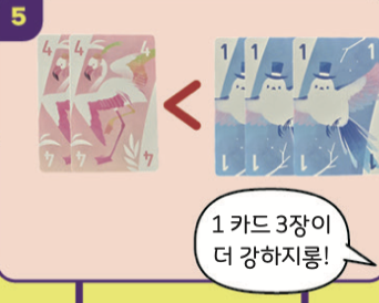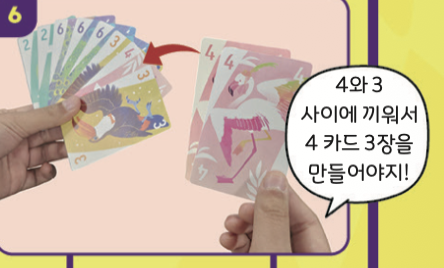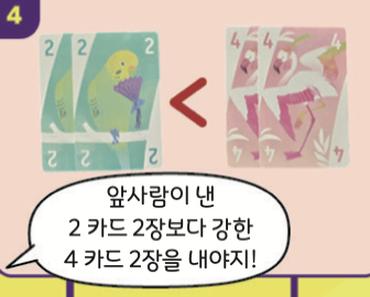 앞사람보다 더 강한 카드를 내야 해요. 숫자가 클수록 강해요. 강한 카드를 내면 앞사람이 낸 카드를 가져올 수 있어요.