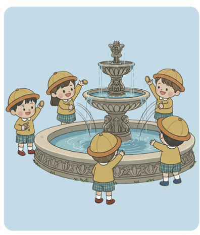 소원을 이뤄주는 분수에 5명이 500원씩 던졌어요. 분수 안에는 총 얼마가 있을까요?