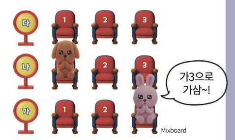 분홍색 토끼가 앉은 좌석 번호는 몇 번일까요?
