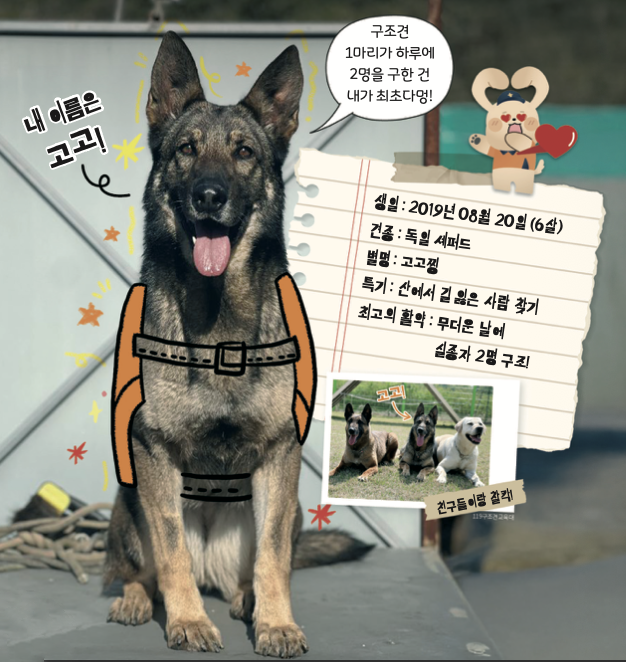 모든 강아지가 처음부터 영웅인 건 아니에요. ‘119구조견교육대’에서 힘든 훈련을 우수한 성적으로 마친 전설의 졸업생 ‘고고’를 소개할게요!
