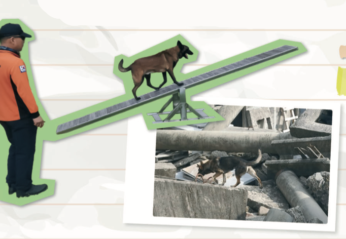 거친 산이나 무너진 건물에서 잘 다니려면, 흔들리는 시소나 높은 사다리를 건너는 시험을 꼭 통과해야 해!