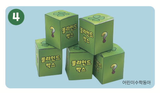 간식 도안을 자른 뒤, 블라인드 박스 안에 원하는 간식을 1개씩 넣고 상자를 닫아요.