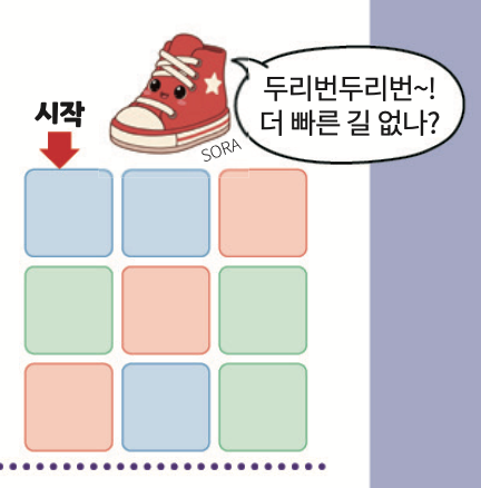 발판을 가장 적게 밟으면서 파란색 발판을 모두 밟으려면, 발판을 총 몇 번 밟아야 할까요?