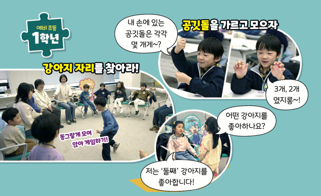 퍼즐을 풀고 게임하다 보니, 어느새 수학 개념이 머릿속에 쏙쏙 들어왔어요. 친구들과 즐겁게 웃으며 배운 시간이었지요.