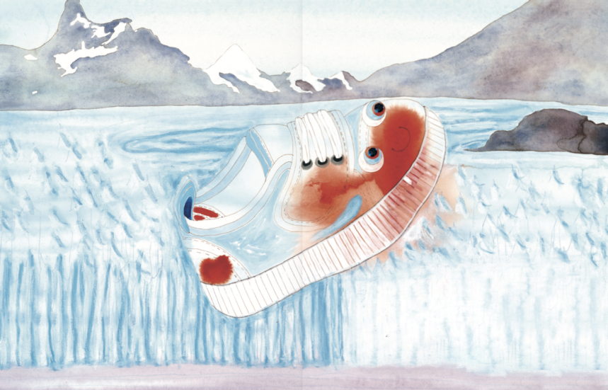 “아직 몇 걸음밖에 못 걸었어. 아기랑 같이 여행하고 빙하 위를 걷고 싶었는데. 세상은 끝없이 이어진다고 엄마 신발이 가르쳐줬어.”