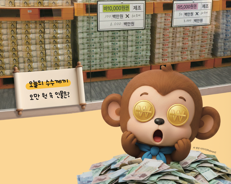 오늘의 수수께끼 힌트는 돈으로 가득한 이곳에 숨겨 놨어. 특별 미션도 준비했으니 궁금하다면, 나를 따라와!