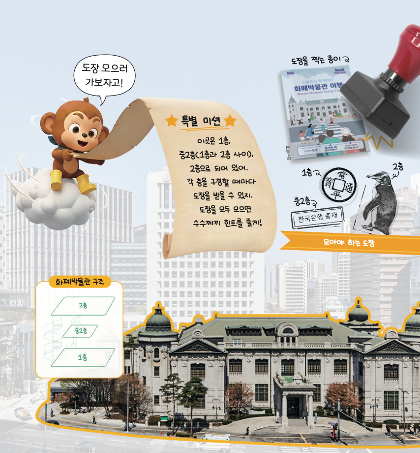 화폐에 대한 모든 것을 담고 있는 곳이지. 고풍스러운 건물이 멋지지? 그런데 진짜 멋진 건 안쪽이야! 함께 가보자고~!