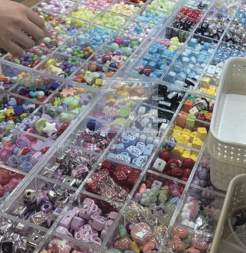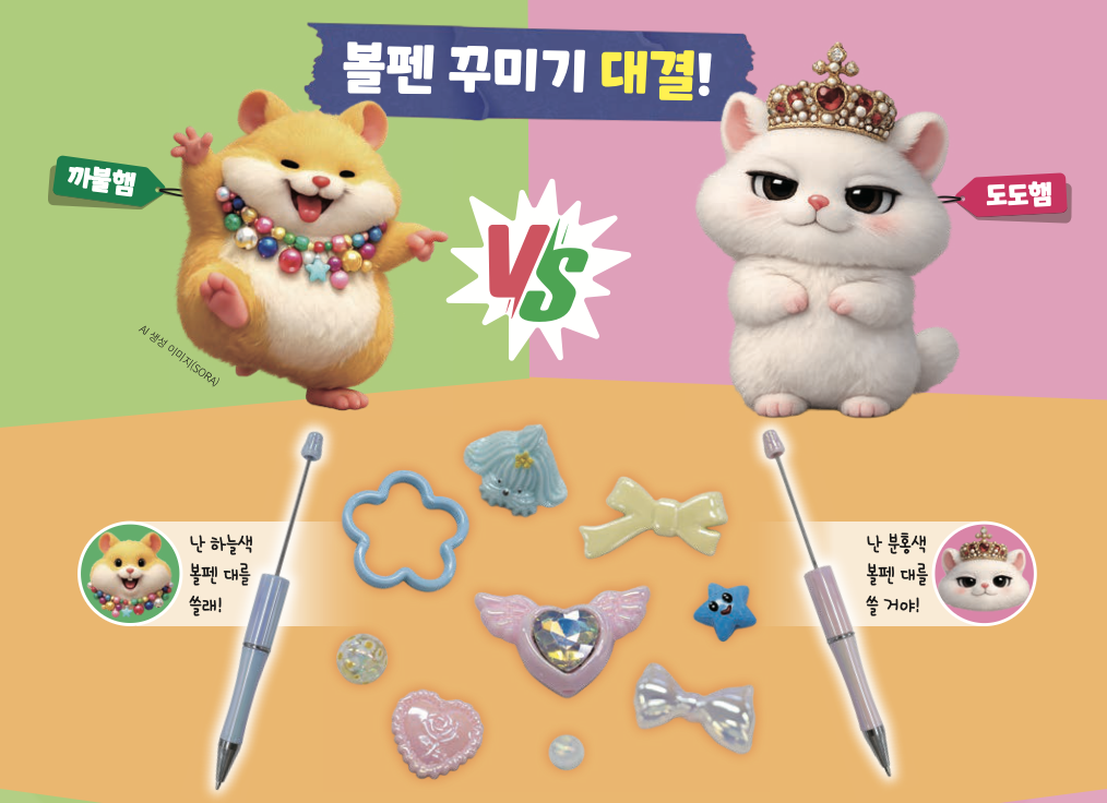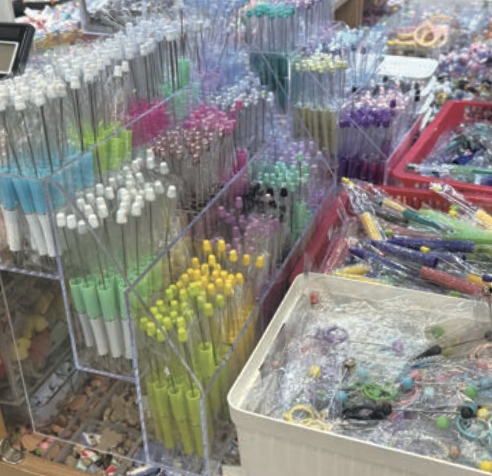 요즘엔 액세서리 시장에 직접 가서, 볼펜에 다양한 파츠를 끼워 나만의 볼펜을 만드는 활동이 인기예요.