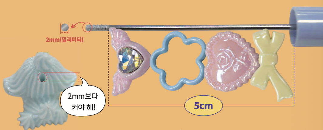 3. 볼펜 대의 지름이 2mm라면, 파츠의 구멍 지름이 2mm보다 커야 해요.