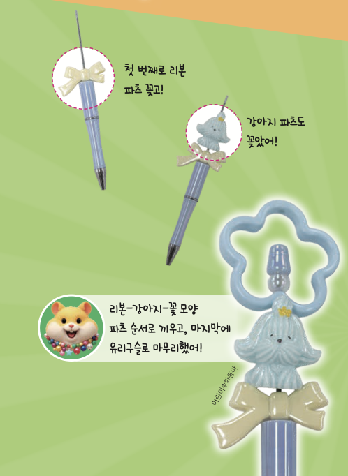 2. 원하는 파츠들을 골라 볼펜 대에 끼워요.
