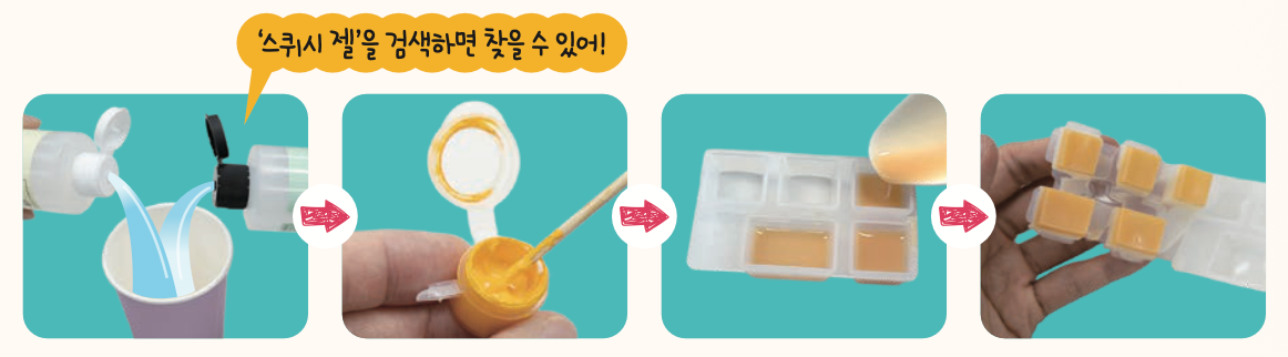 뚜껑을 닫고 굳힌 뒤에 틀에서 빼면 돼!