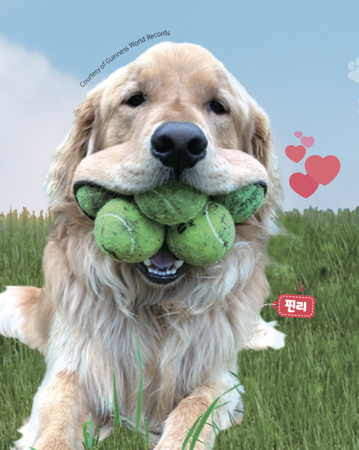 미국 캐넌다이과에 사는 핀리는 한 번에 테니스공을 6개나 입에 물어서 기네스 세계 기록에 올랐어요. 입이 보물창고나 다름없어요!