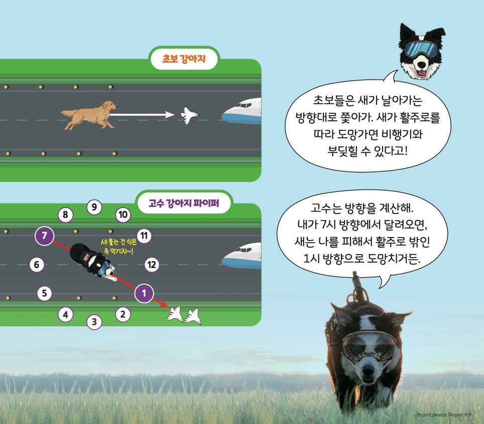 나는 미국 미시간 주 ‘체리 캐피탈 공항’에서 활주로★를 지켰던 보더 콜리 ‘파이퍼’야. 비행기가 뜰 때 새들이 부딪히면 정말 위험해.