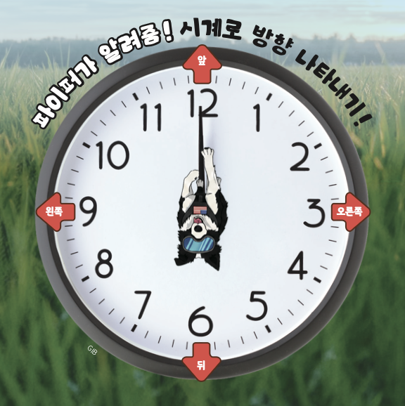 시계의 숫자판을 이용해 방향을 표현하기도 해요. 내가 바라보는 방향은 12시, 오른쪽은 3시, 왼쪽은 9시 방향이라고 하지요.