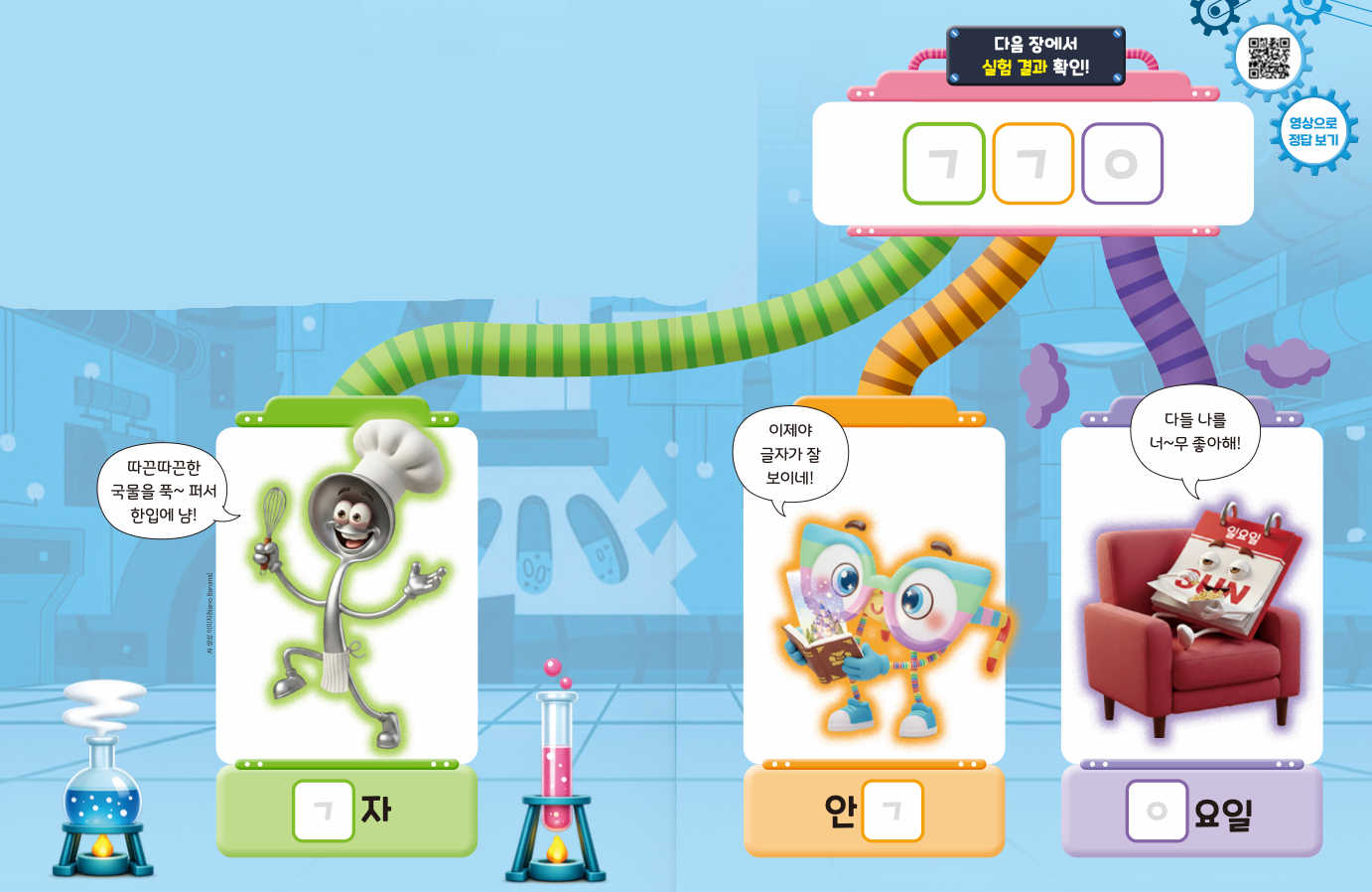 여기는 단어 실험실! 여러 단어를 섞으면 어떤 단어가 나올까요? 잘못된 답이면 기계가 펑! 하고 터질지도 몰라요!