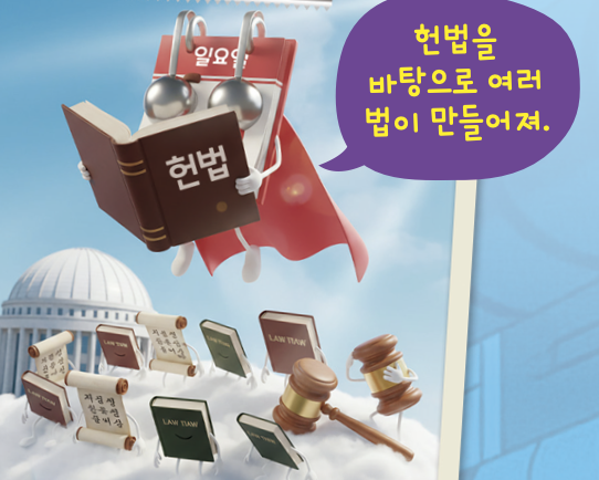 하지만 국경일은 그냥 쉬는 날이 아니라, 중요한 의미가 담긴 날이에요. 제헌절도 1948년 7월 17일에 우리나라의 헌법이 만들어지고 사람들에게 알려졌다는 사실을 되새기는 날이지요. 헌법은 국민의 권리★를 지켜주고, 우리가 지켜야 할 의무★도 알려주는 나라의 규칙이에요.