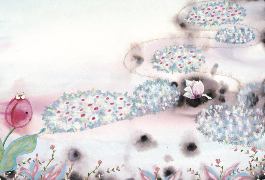 “목련꽃이 팔랑팔랑 떨어지더니 내 가시에 내려앉지 뭐야.