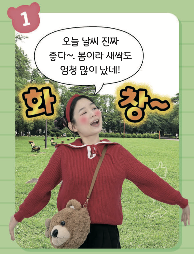 다곰이들~! 오늘은 날씨가 좋아서 공원에 나왔어.