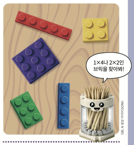 다음 중 브릭의 튀어나온 동그라미 ‘스터드’의 수가 4개인 브릭은 총 몇 개일까요?
