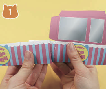 팝콘 통을 사각형 모양으로 접고 끝부분을 서로 붙여요.