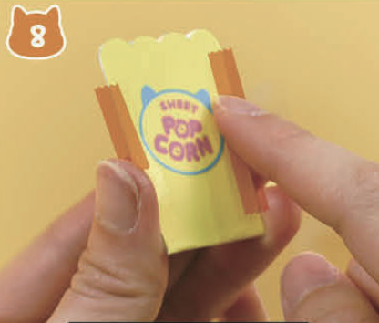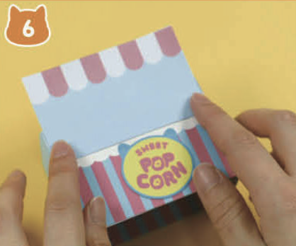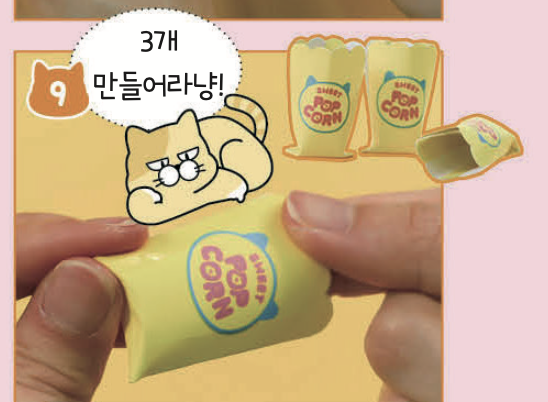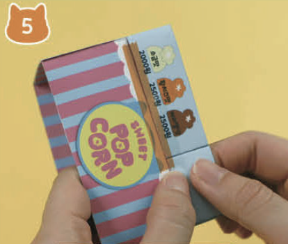 세 가지 맛 팝콘 도안을 동그랗게 구겨서 팝콘 통에 넣어요.