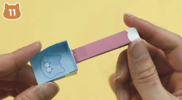 연결된 받침대 도안을 상자 모양으로 접고, 풀칠해 붙여요.