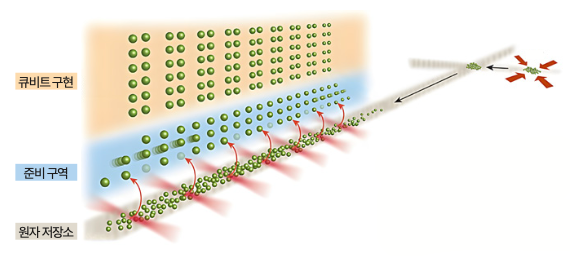 비결은 빠르게 대규모의 중성 원자를 옮길 수 있는 ‘광학 격자 컨베이어 벨트’ 기술이다. 루킨 교수팀은 먼저 중성 상태의 루비듐(Rb) 기체가 저장된 ‘원자 저장소’를 만들었다. 이후 레이저 빛을 이용해 컨베이어 벨트처럼 대량의 루비듐 원자를 한번에 진공 챔버로 옮겼다. 루비듐 원자는 2차원으로 배열해 큐비트로 만들었다. 큐비트는 오랫동안 일정한 양자 상태를 유지하기 어렵다는 단점이 있다. 그러나 루킨 교수팀은 컨베이어 벨트로 새로운 중성원자를 계속 공급하면서 3000큐비트 배열을 2시간 동안 유지하는 데 성공했다. 안정적으로 중성원자 양자컴퓨터 시스템을 유지할 수 있는 기반을 보여준 것이다.