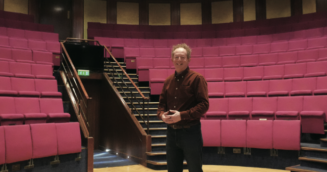 “제가 제일 좋아하는 비밀을 알려드릴게요. 거기, 문 앞부터 관객석까지 쭉 걸어오면서 말을 해보세요. 아무 말이나 괜찮아요.”