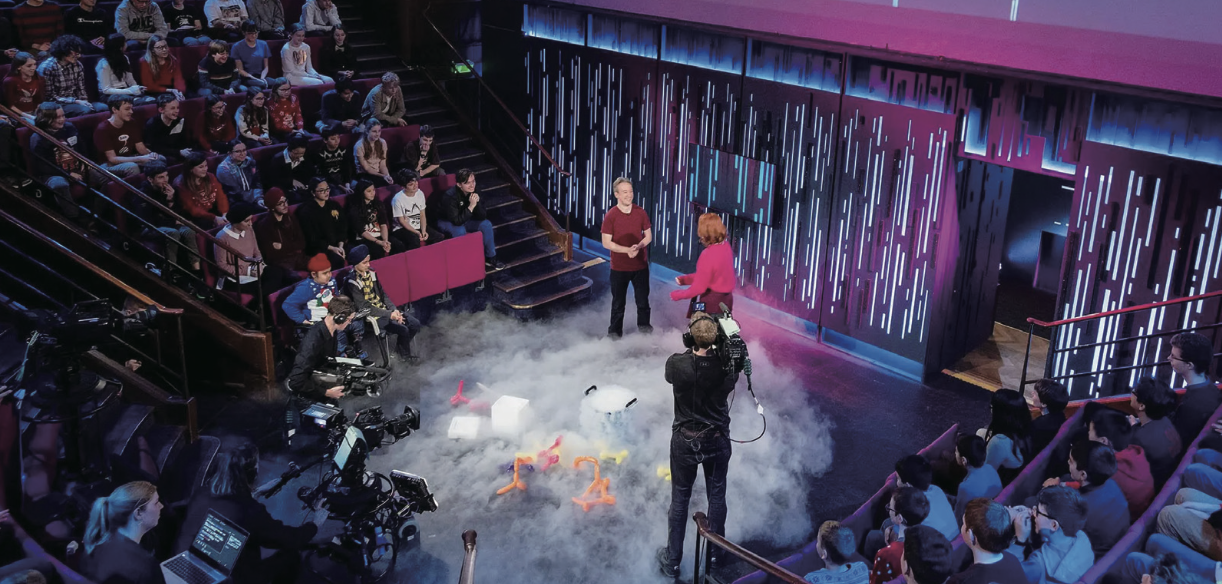 “이곳은 우리 보물창고예요.” 글레이저 국장이 역대 크리스마스 강연에서 활용된 인형, 폭탄, DNA 모형 등 소품이 잔뜩 쌓여 있는 거대한 창고 문을 열었다. 바로 앞에서 화학반응이 일어나거나, 독특한 물리 현상이 재현되는 경험은 절대 잊히지 않는다. 어딘가 그슬리고, 떨어져나가고, 의문의 액체가 남긴 얼룩이 있는 소품의 모습이 강연 현장의 분위기를 상상하게 했다.