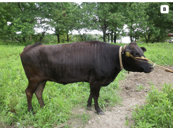 이 실험은 일본 아이치현의 한 목장에서 진행됐습니다. 연구팀은 일본흑우 여섯 마리를 세 그룹으로 나눴습니다. 첫 번째는 흰색 페인트로 줄무늬를 칠한 흑백 줄무늬 그룹, 두 번째는 검은색 페인트로 칠한 검정 줄무늬 그룹, 세 번째는 아무것도 칠하지 않은 그룹이었습니다. 각 그룹은 3일 동안 같은 방목장에서 생활했습니다. 연구팀은 각 소를 30분간 관찰하며 파리 회피 행동(머리 젓기, 귀 털기, 꼬리 휘두르기 등)을 얼마나 하는지, 몸통·다리에 착륙한 파리의 수는 얼마인지 셌습니다.