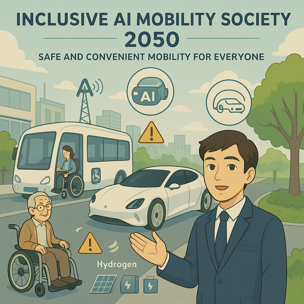 나는 2050년의 사회가 사회적 약자를 포함한 모든 사람이 차별 없이 안전하고 편리하게 이동할 수 있는 포용적 AI 모빌리티 사회가 되어야 한다고 생각한다. 고령자와 장애인의 증가로 이동권 확보는 사회 전반의 중요한 과제가 되었고, 자율주행·AI·V2X(Vehicle-to-Everything) 기술 발전은 교통약자 맞춤 서비스를 제공할 수 있는 기반이 되고 있다. AI는 위험을 실시간 인식하고 사고를 미연에 방지하여 자율주행차의 안전성을 높이며, 수소·태양광·전기배터리 등 친환경 에너지는 지속가능한 교통 시스템의 핵심이 된다.[2][3]