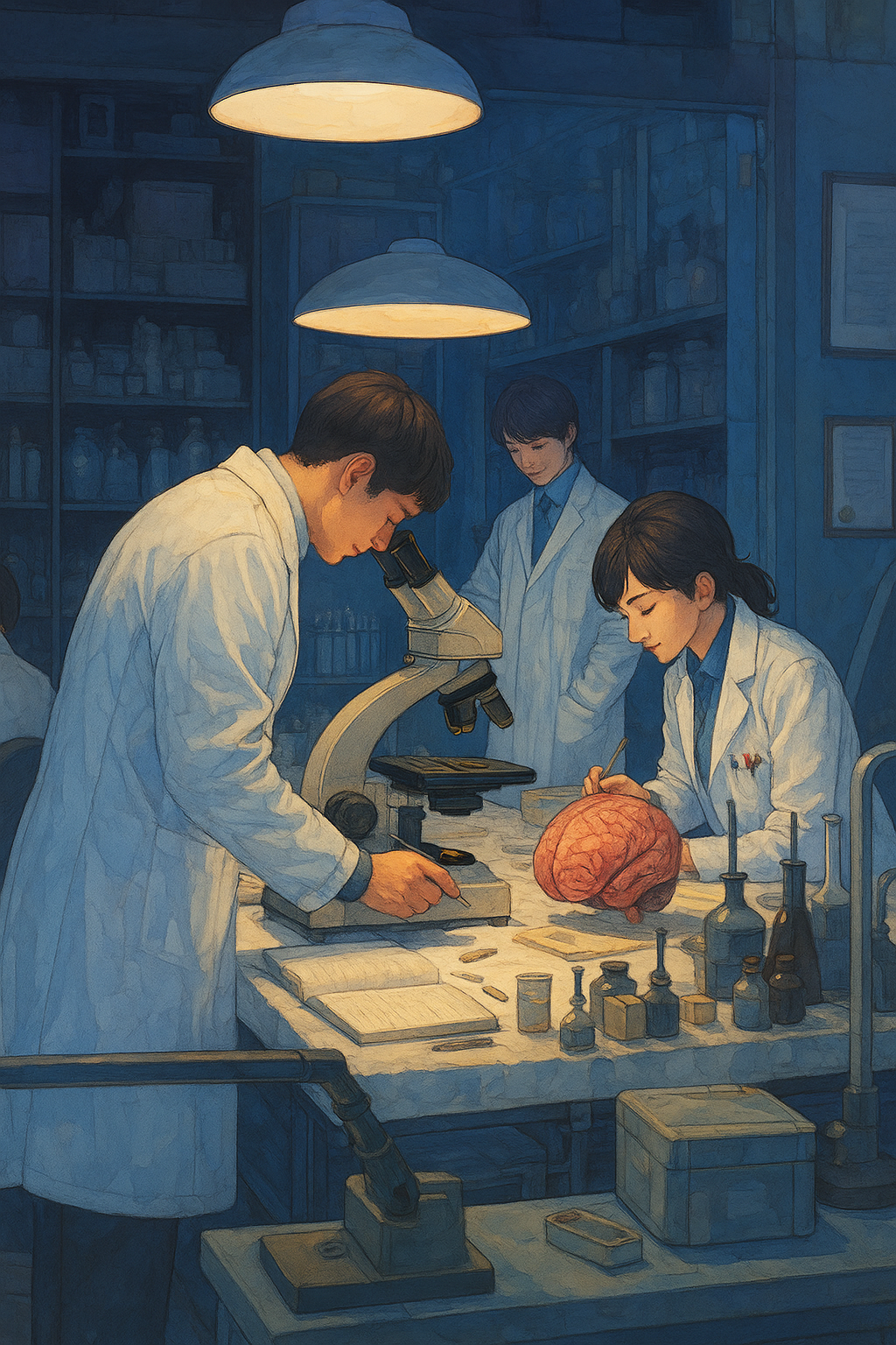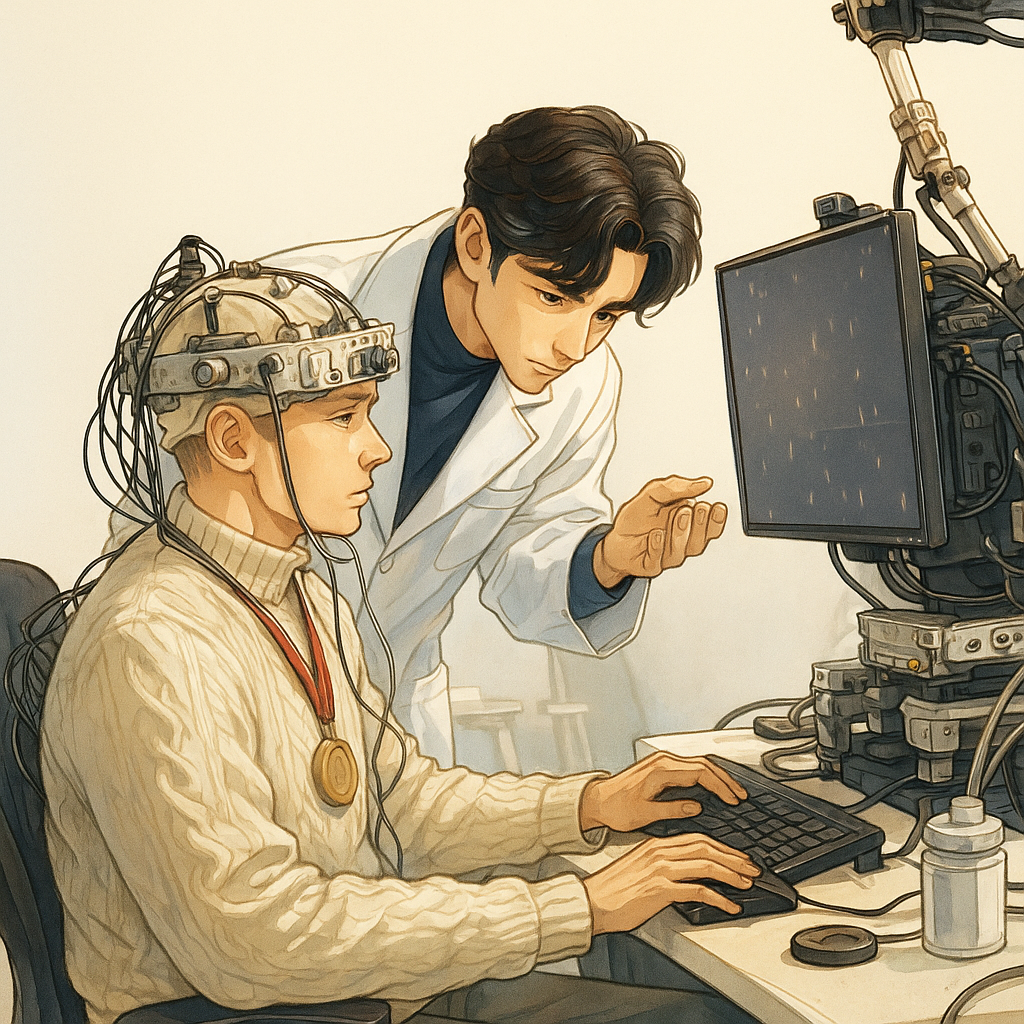 2050년, 한국과 글로벌 연구 네트워크가 연결된 국제 뇌과학 융합 연구센터에서 하루를 시작합니다. 세계 각국의 뇌 과학자, 의공학자, 인공지능 전문가가 모여 인간 뇌와 신경질환을 연구하며, 인간 존엄성을 지키는 맞춤형 치료법을 개발 하는 최첨단 공간입니다. 연구실 내부에는 AI 기반 뇌 신호 분석 시스템, 광유전학 장치, 맞춤형 뉴럴링크 유사 장치, 장기 무선 뇌 신호 기록 장치가 정밀하게 배치되어 있어 하루 동안 다양한 실험과 데이터 분석이 동시에 이루어집니다. 저는 인간 중심 치료와 과학적 탐구를 융합하여 미래 사회에서 실제 적용 가능한 연구를 수행하고 있습니다.