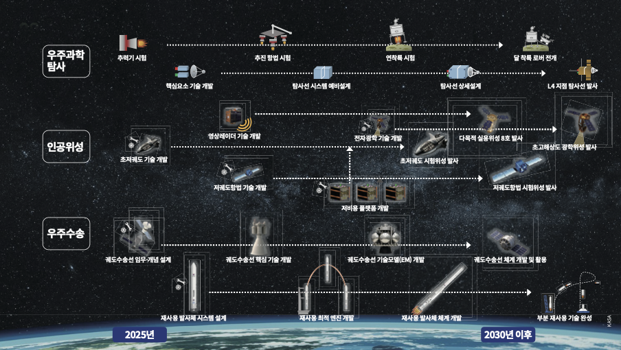 우주항공 선진국이 되려면 시장 경쟁력이 가장 중요합니다. 발사체는 ‘쏘고 다시 쓸 수 있는 구조’가 이 경쟁력을 좌우하죠. 이번 로드맵의 목표는 미국의 스페이스X가 재사용 로켓을 상용화해 우주항공 시장을 뒤흔든 것처럼, 한국도 민간 주도의 조립·발사 생태계를 확대해 ‘우주항공 5대 강국’에 진입하는 것입니다. 누리호 4차 발사는 이런 야심찬 로드맵을 위한 중대한 전환점이죠.