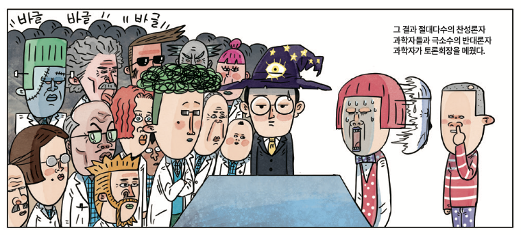 과학적 사실은 단 하나의 결정적인 실험으로 성패가 정해지는 경우가 드물다. 담배의 유해성, 인간에 의한 기후변화와 같은 과학적 사실은 수십 년의 세월에 거친 수많은 과학자들의 실험으로 증거가 차곡차곡 쌓이면서 그 실체가 서서히 드러난다. 더군다나 자신이 발언하는 분야에 관해서 독립적인 연구를 수행하지도 않고, 자신에게 유리한 데이터만 골라내고 불리한 데이터는 무시하며, 과학의 불확실성을 강조하면서 아무것도 합의된 게 없다고 주장하는 과학자들이 있다면, 이들에게 평등한 발언의 기회를 줘야 할까?
