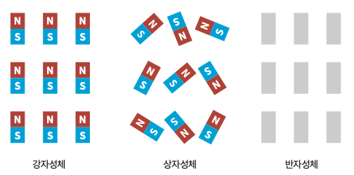 모든 전자는 동일한 크기의 각운동량, 즉 동일한 크기의 스핀을 갖는다. 그런데 방향까지 똑같은 것은 아니다. 이 방향은 자성을 결정한다. 김 교수는 “자석은 원자들의 스핀이 모두 같은 방향으로 정렬된 것”이라며 “물체의 자성은 물체 속 전자의 스핀 방향에 따라 결정된다”고 설명했다. “일반 물질은 원자들이 제각각 다른 방향을 보고 있어요. 마치 운동장에 서 있는 학생들이 사방을 향해 흩어져 있는 것처럼요. 반면 자석은 모든 학생이 같은 방향을 보고 도열한 상태입니다. 이렇게 스핀이 정렬되면 자성이 나타나는 거죠.” 자석이든 나무든 모두 내부에는 전자로 가득 채워져 있지만, 전자가 지닌 스핀이 한 방향으로 일정해야만 자성을 띤다는 것이다.