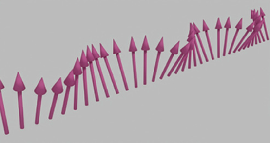 김 교수는 추가로 ‘준입자(quasi-particle)’ 개념을 끌어왔다. 준입자란 입자가 아니지만, 마치 입자처럼 행동하는 물질들이다. “자석은 스핀이 모두 한 방향으로 정렬된 상태입니다. 이 상태에서 한쪽에 스핀을 요동시키면 그 요동이 주변으로 파동처럼 전달돼요. 마치 탄성파처럼 말이죠. ‘스핀파’라고 합니다.”