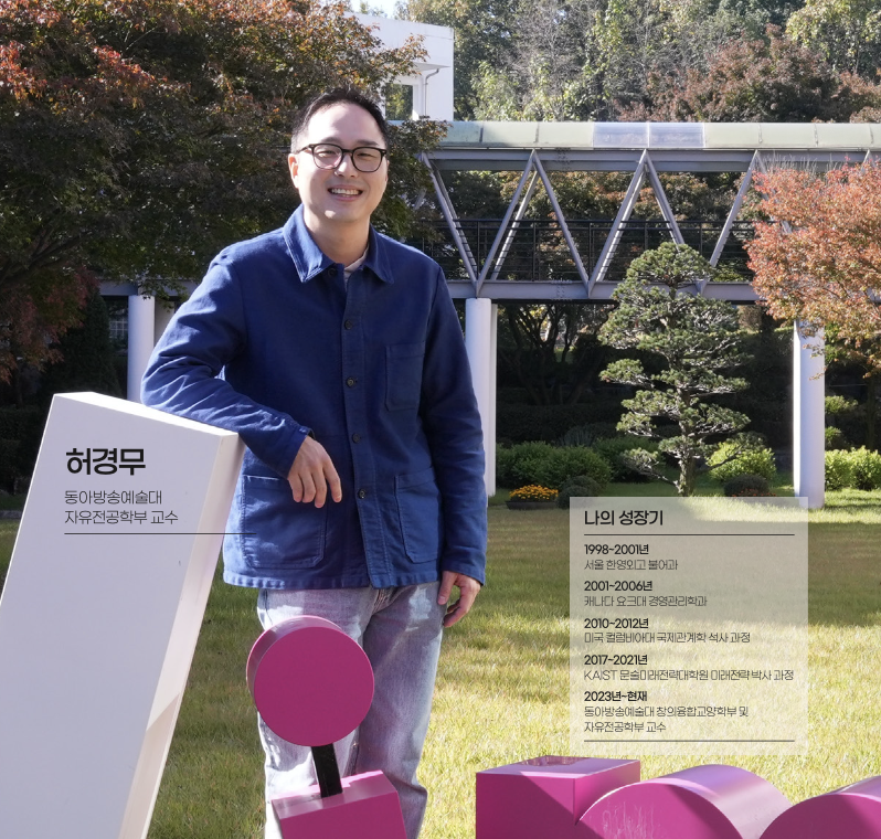 현재 나는 미래학을 전공한 공학박사이자 동아방송예술대(DIMA) 자유전공학부 교수로, 과학·인문학·예술을 넘나드는 융합적 접근을 토대로 미래를 연구 중이다. 이름에서 알 수 있듯 동아방송예술대는 한국 유일의 방송예술분야 특성화 대학이다. 봉준호 감독의 영화 ‘기생충’, 넷플릭스 드라마 ‘오징어게임’ 등을 촬영한 DIMA종합촬영소를 보유한 동아방송예술대는 수많은 연예인을 비롯해, 다양한 방송현장 전문가를 양성하고 있다. 이런 개성 있는 학교이기에, 학교 안팎에서 자주 듣는 질문이 있다. “공학박사는 예술대에서 뭘 가르치나요?”